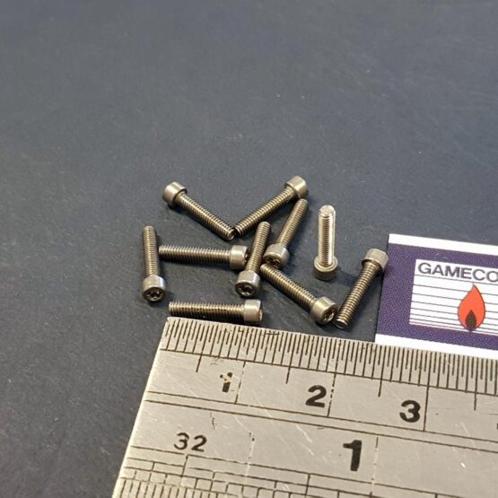 Pack of 10 stainless steel screws, 1-72 thread, socket head, Torx socket, 3/8″ long.