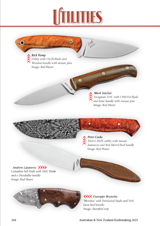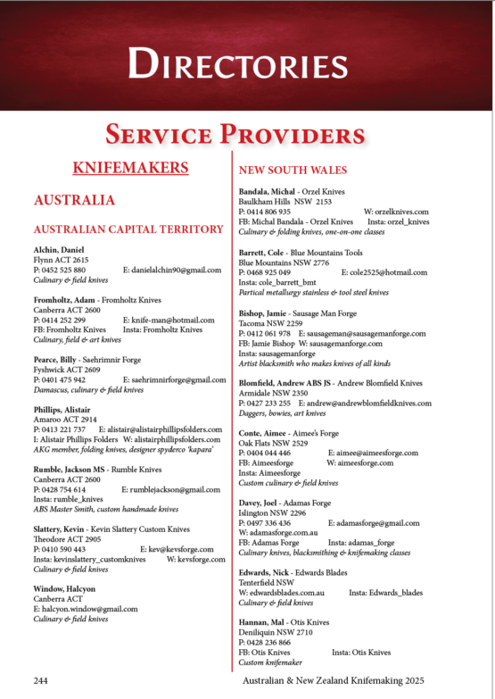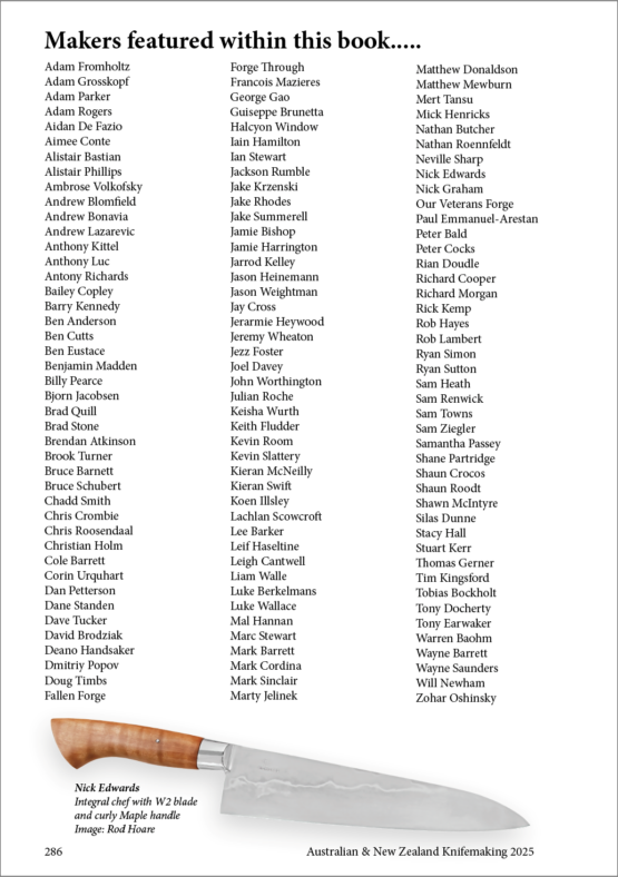 Rod Hoare Knife Images Presents Australian and New Zealand Knifemaking 2025 with 288 pages of articles, images and resources for the maker, collector and enthusiast promoting the craft of knifemaking in Australia and New Zealand.