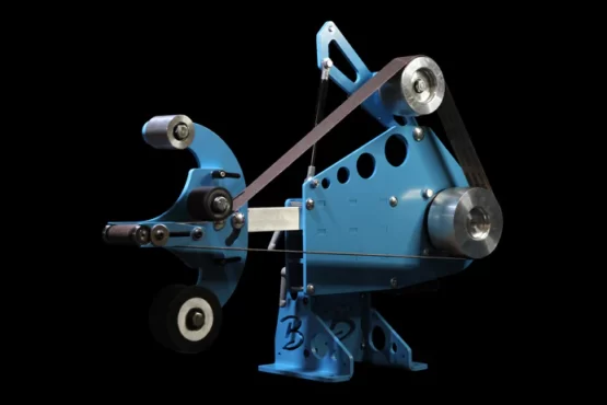 Available in either kit form or (by special order) as a fully painted and assembled unit, it comes with a mounting bracket, guide wheel, interchangeable small wheels, and all the necessary hardware to mount on either your Brodbeck Ironworks platen arm, or Brodbeck Ironworks quick-change accessory arm.