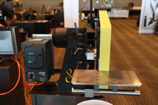 - Rotating platen with carbide-faced flat platen, 50mm/2”, 75mm/3”, and 125mm/5” contact wheels