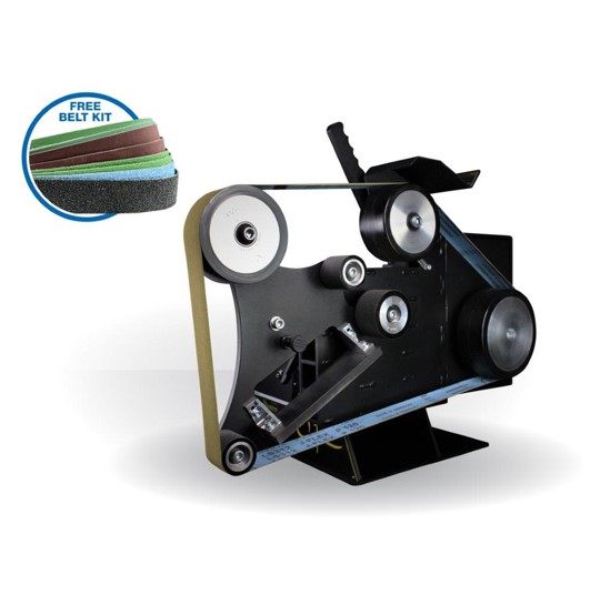 FREE WITH THIS GRINDER: Beginners Belt Kit with 10 assorted belts – enough to make your first 3 – 5 knives taking them from rough profiling and bevelling through to a 600 grit satin finish, as well as handle shaping.