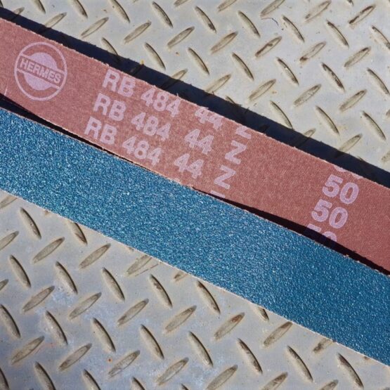 The Hermes Zirconia Belt 2 x 48″ (50 x 1220 mm) – These belts rip through wood. A very sharp uncoated coarse belt that is resistant to clogging. It is ideal for grinding softer materials such as wood, G10, micarta, and other softer handle materials.