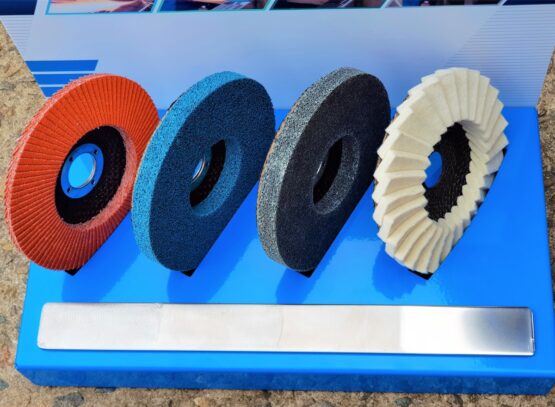 Suitable for 125mm angle grinder. Roughly equivalent to an 800 grit finish. Use in grit progression after Norton Rapid Blend Vortex and before felt flap disc with polishing compound. Clean, blend and polish imperfections in a variety of metal surfaces with the NEX Rapid Blend aluminum oxide fine grit non-woven depressed center disc. A great tool for welding, fabrication and industrial applications, the fine-grit disc works with an angle grinder to smooth away irregularities in brass, soft metals, super alloys and stainless steel, leaving behind a flawless finish. The premium aluminum oxide material delivers a reliable performance, and the resin formula eliminates smearing. With its uniform construction, the disc ensures longevity while preventing cutting and gouging.