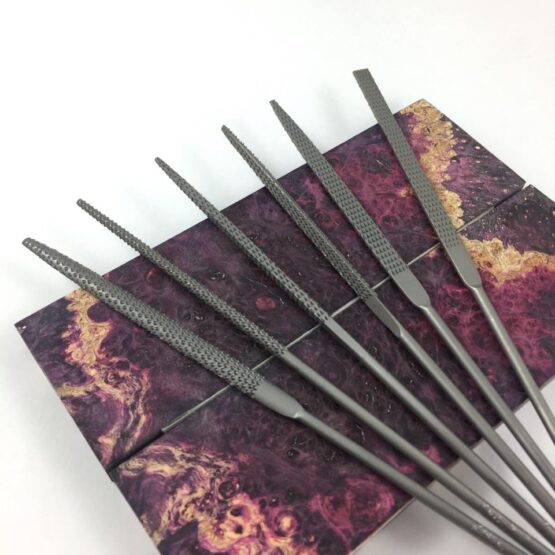 Vallorbe Needle file sets are world renowned for their quality and performance. Genuine Vallorbe, made in Switzerland. Rasp cut, includes pillar, half round, triangle, square, round, barrette. 140mm overall length.