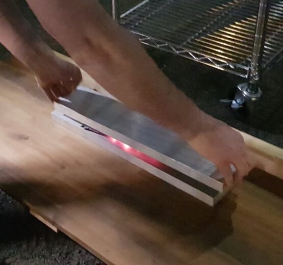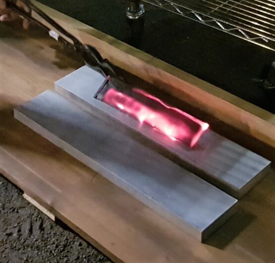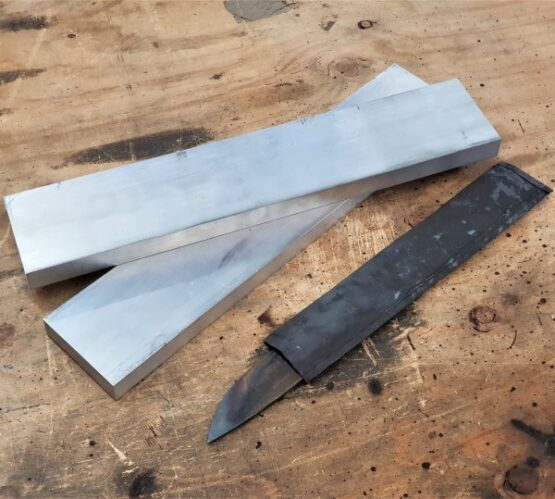 Aluminium quench plates are used when heat treating stainless and high alloy steels with slower quench speeds. The plates are heat sinks that quickly cool the blade and also hold it straight. Clamp the plates with the blade between them to ensure firm contact while quenching.
