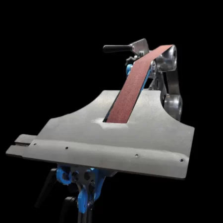 This attachment uses 1/2″ by 72″ belts and we recommend running it with a lot of tension on the belt for peak performance. Comes with 24 0.5″ by 72″ belts to get you started straight away (8 in 80 grit, 8 in 120 grit and 8 in 320 grit).