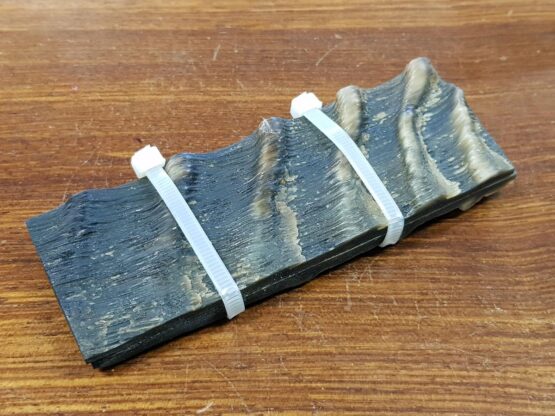 Dimensions: Approximately 125 x 50 x 5mm, set of two scales. NOT FOR BEGINNERS! These horn scales are not perfectly flat and may require steam bending to straighten. Horn has natural oils which may make it difficult to glue. A mechanical means of fastening like cutlers rivets or peened pins is recommended for attaching horn scales to a handle. This is a natural material and will come with defects at no extra charge.
